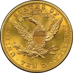 Rewers przedstawia wersję Wielkiej Pieczęci Stanów Zjednoczonych oraz orła z rozpostartymi skrzydłami, który w szponach dzierży strzały i gałązkę oliwną. Wielka Pieczęć jest otoczona tekstem “United States of America” i wartością nominalną “10 Dolarów”.