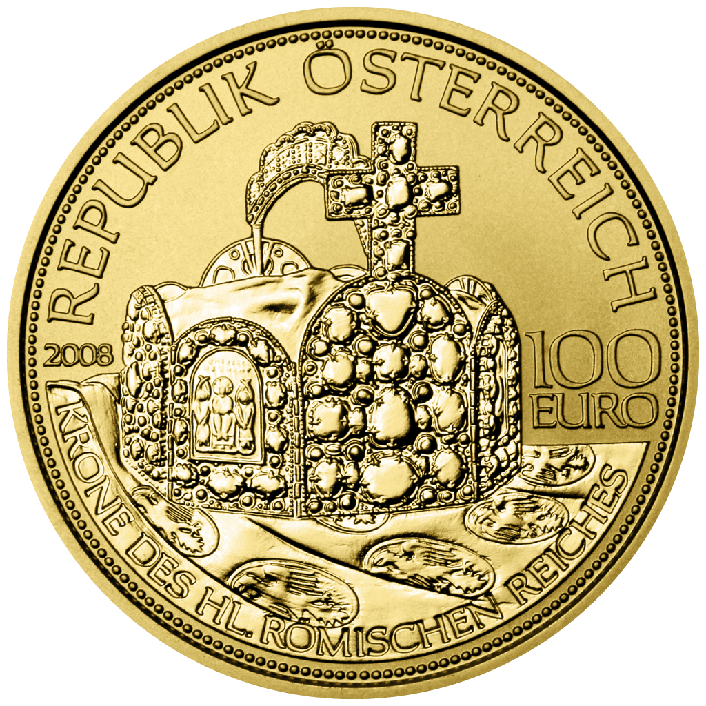 Austriackie złote monety 100 euro (16 g, próba 986) mają kilka charakterystycznych cech: